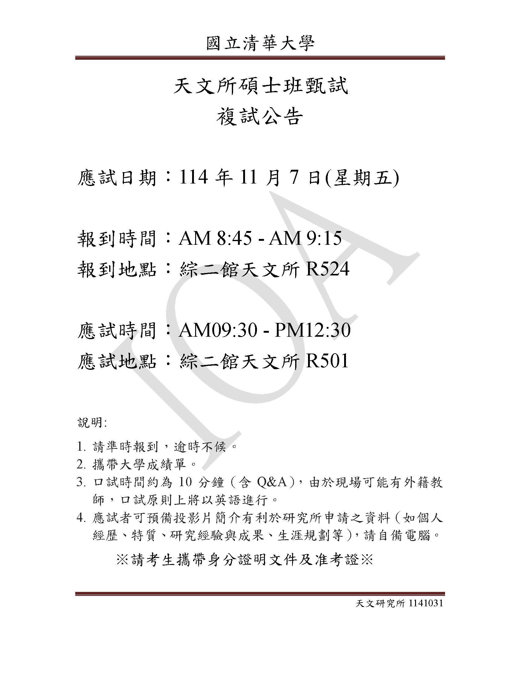 115學年度碩士班甄試 複試公告
